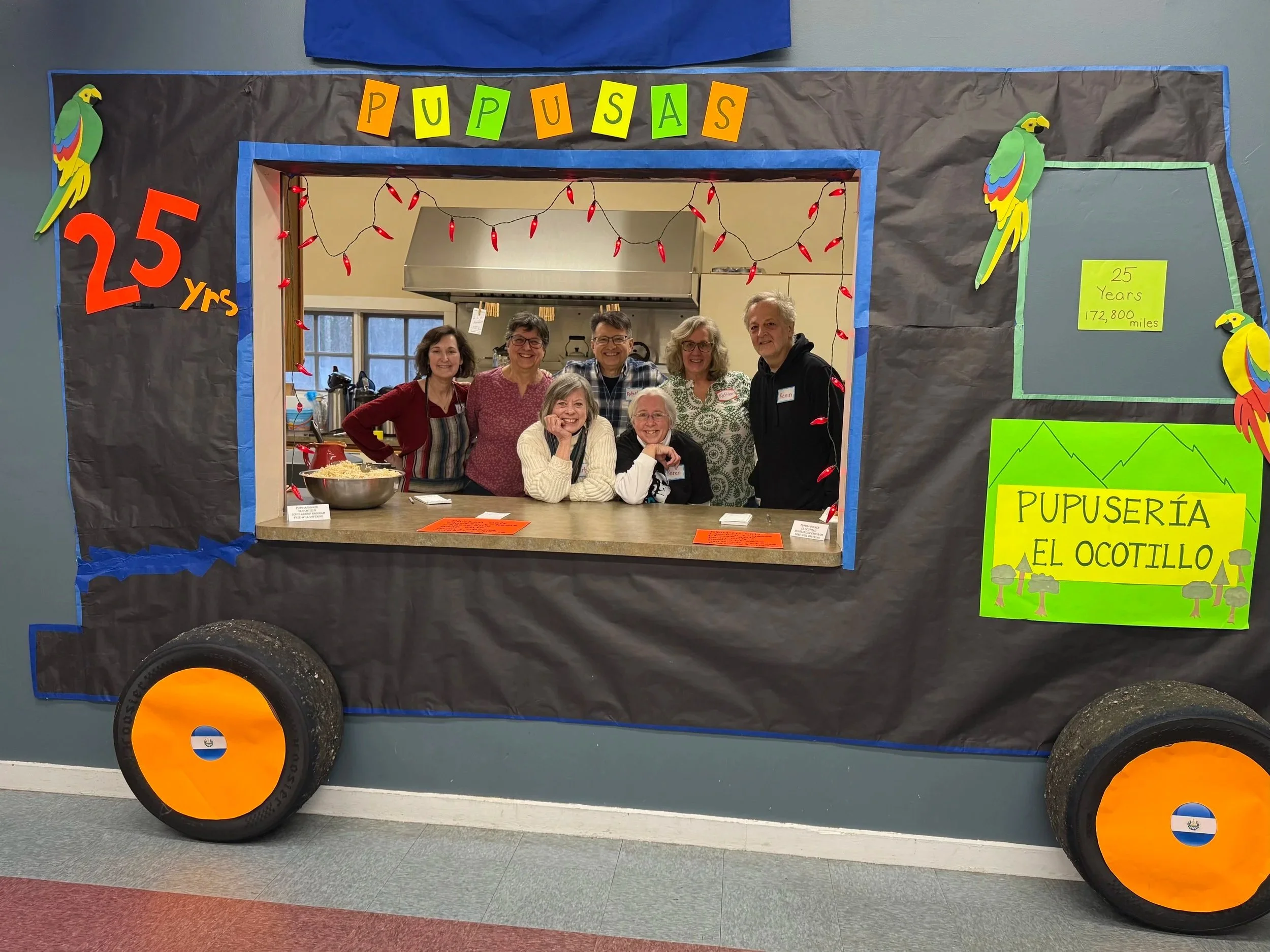 About 70 people gathered on Saturday for a fun evening of fellowship, music, and Salvadoran food to celebrate our 25th anniversary of relationship with El Ocotillo and to raise funds for the scholarship program. We heard from Jessie Panek about the history of our relationship and how we came to support education in the village; and from Barb Magee about the current state of the government. The highlights of the evening were videos from each of the students and a heartfelt message from Lilian del Carmen, one of our first scholarship students.